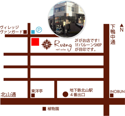 地下鉄北山駅4番出口を出て徒歩4~5分